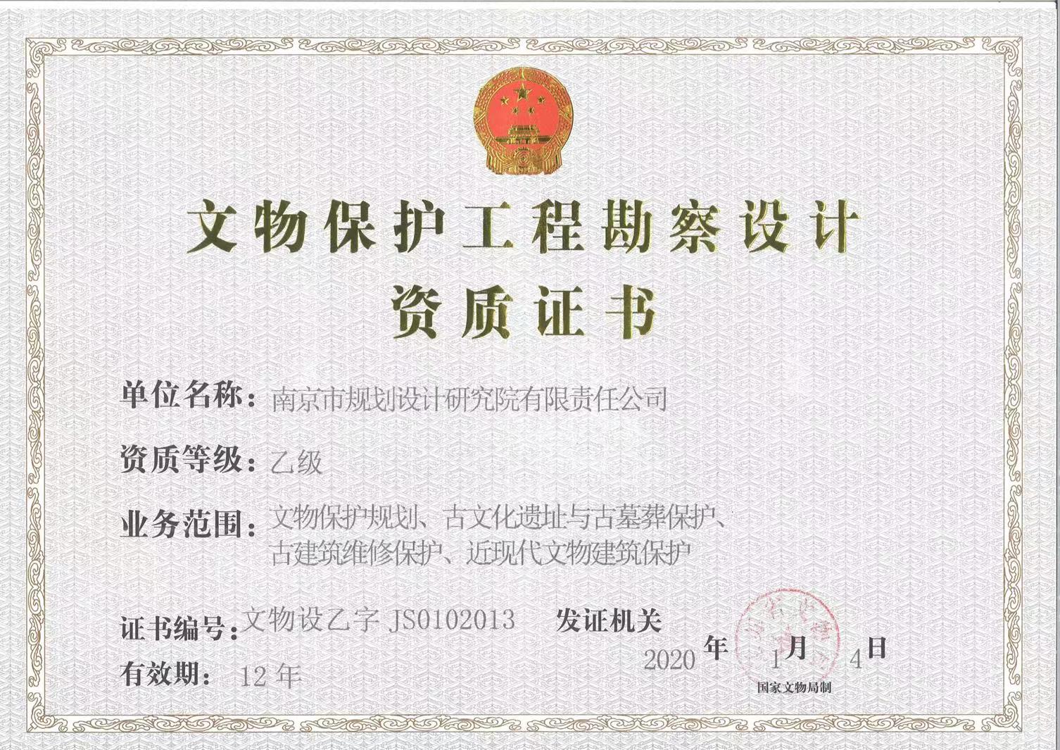 文物保護(hù)工程勘察設(shè)計(jì)資質(zhì)證書(shū)